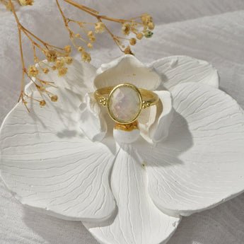 Antique designed Moonstone - June Birthstone Ring is what you're looking for and you don't have to think about size!