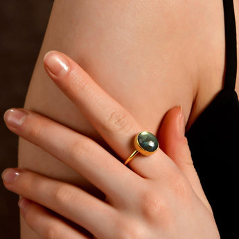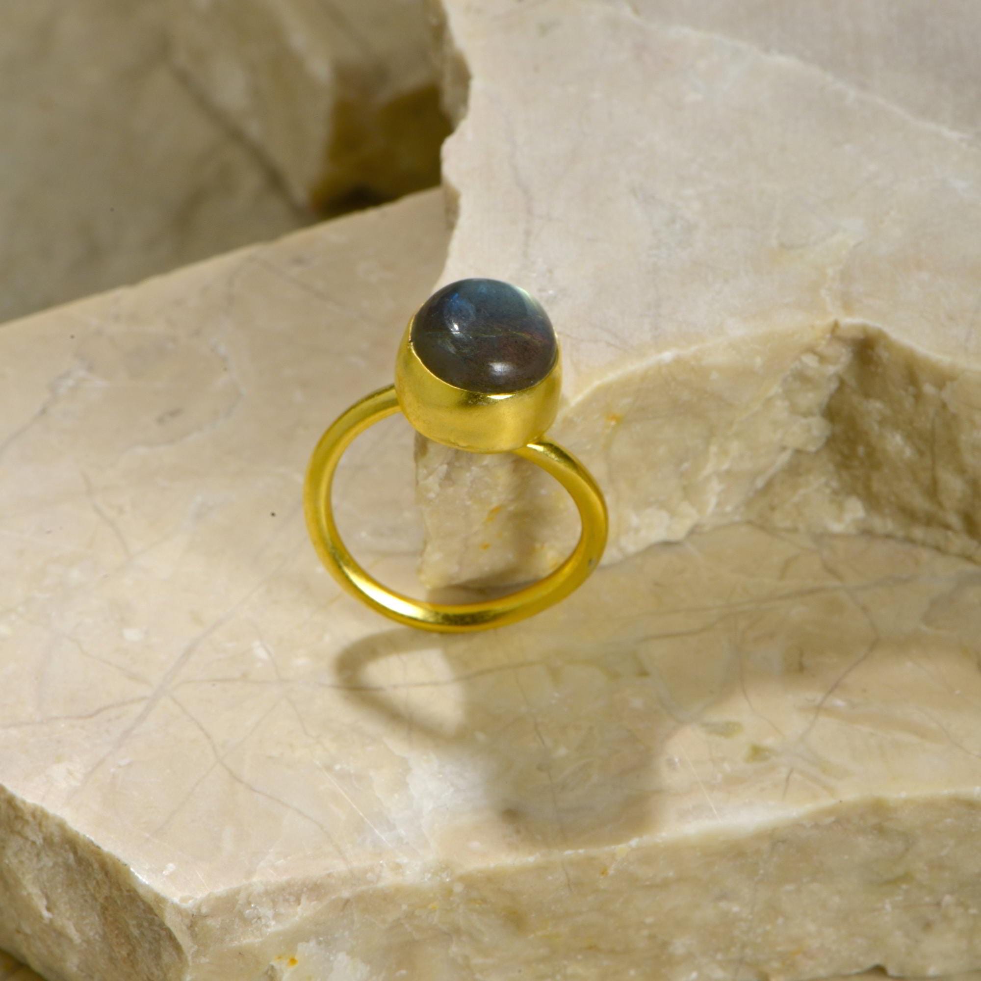 The Natural Labradorite Ring is one of the signature pieces from Augusta Antonina Fine Jewelry’s exclusive Artisan Collection. Entirely handcrafted, this design combines timeless craftsmanship with the natural allure of genuine gemstones, offering a refined yet vintage-inspired treasure.