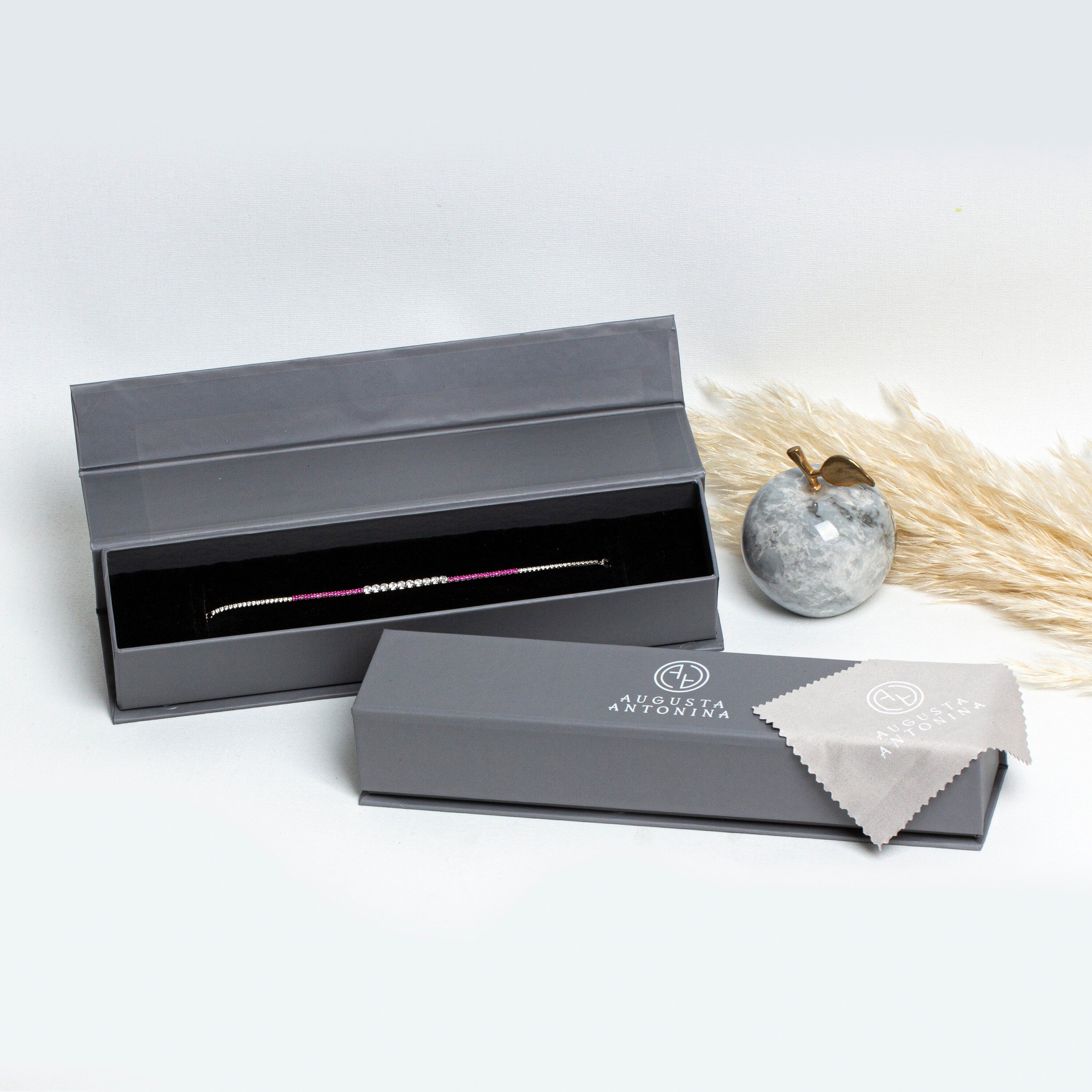 Minimalist Silver Pink CZ Tennis Bracelet is handcrafted by the finest artists with love and care. Dainty Layering Pink CZ Diamond Chain Bracelet is made from 925 solid sterling silver, white cubic zirconia, pink cubic zirconia stones. Round Cut CZ Diamond Bar in the middle and the pink cz stones two sides of it adds elegant look. Cutest design of our tennis bracelet collection is a perfect match to your outfit and available for daily using. Dainty Tennis Bracelet is always awesome gift idea to yourself and your loved ones.