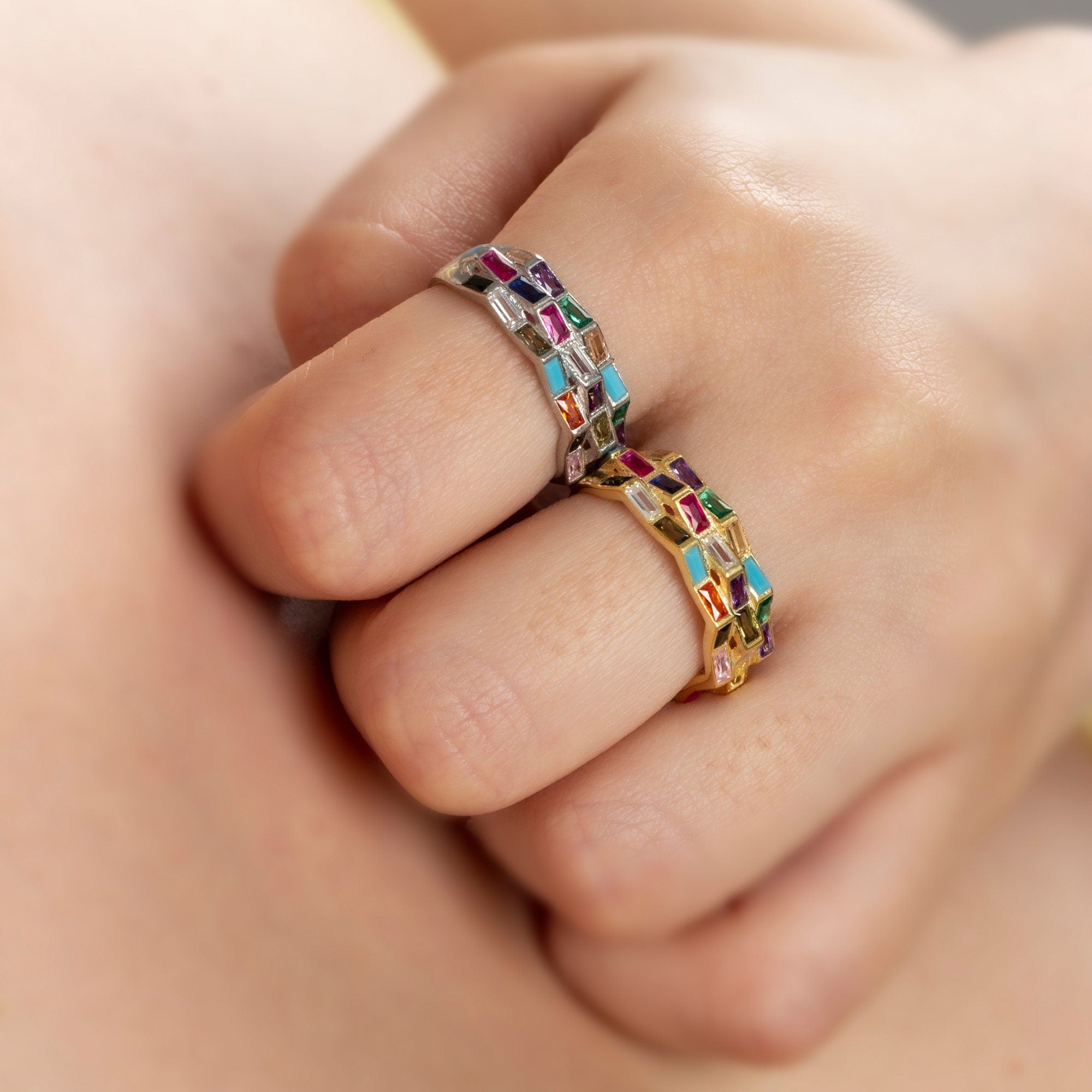 18K Gold Plated Silver Rainbow CZ Ring jewelry will be perfect match for your outfit.