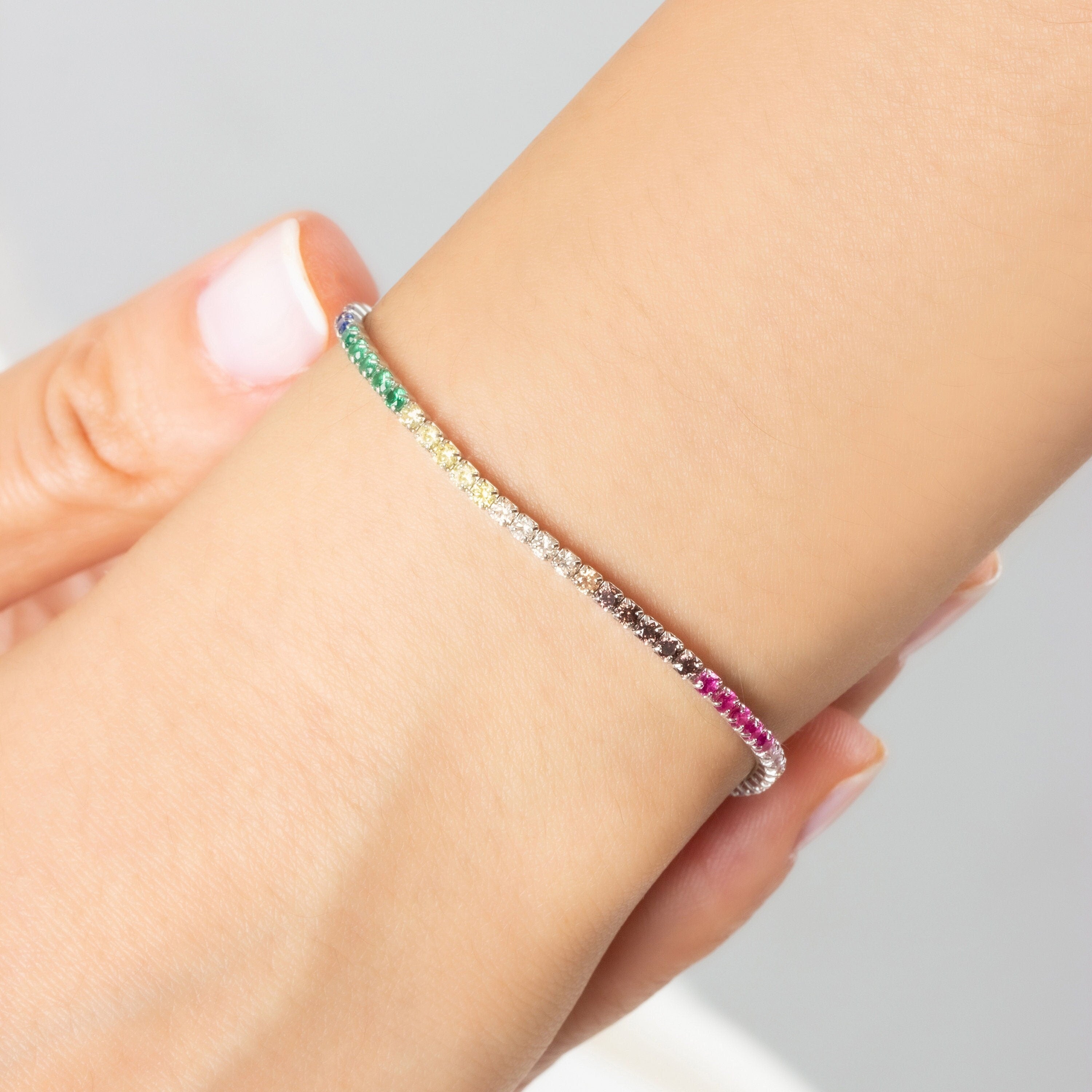 This adorable Sterling Silver Rainbow Tennis Bracelet jewelry is what you‘re looking for!