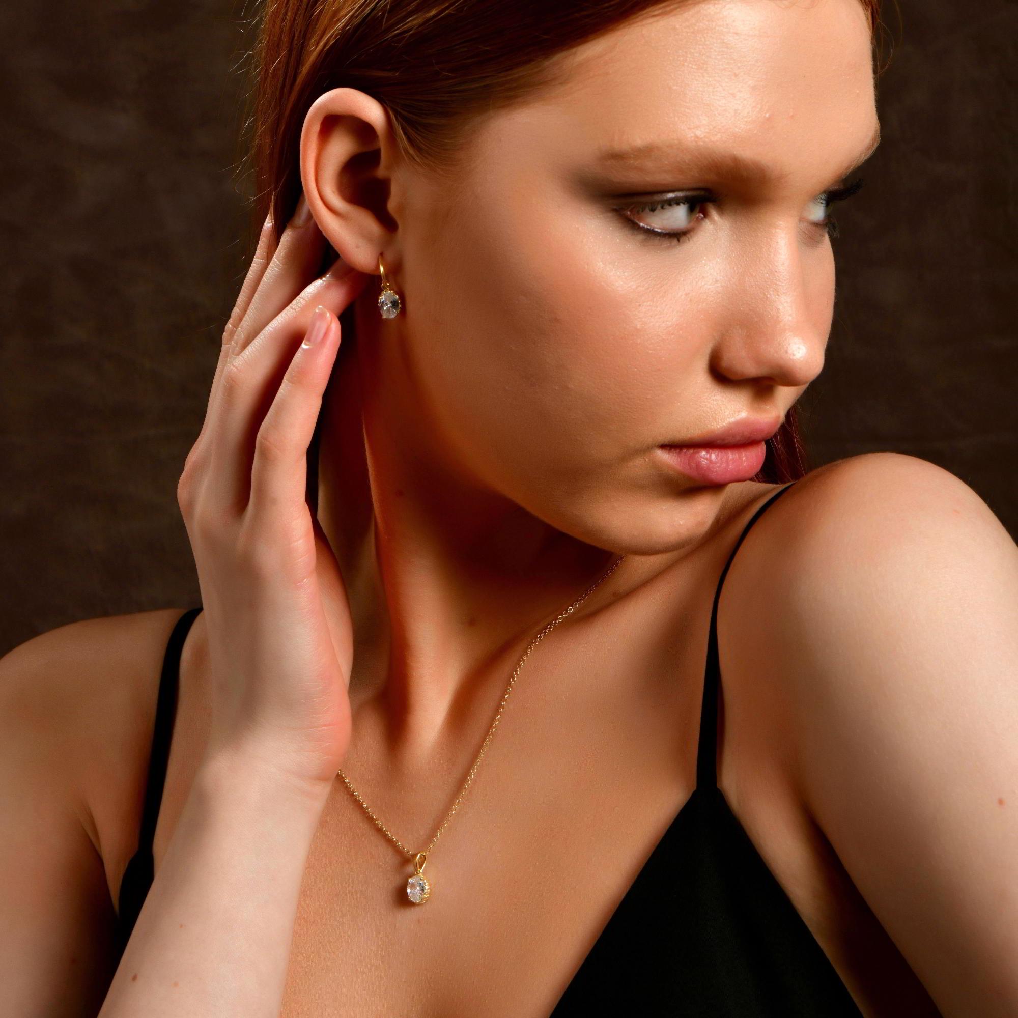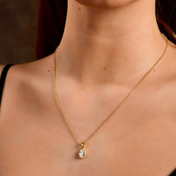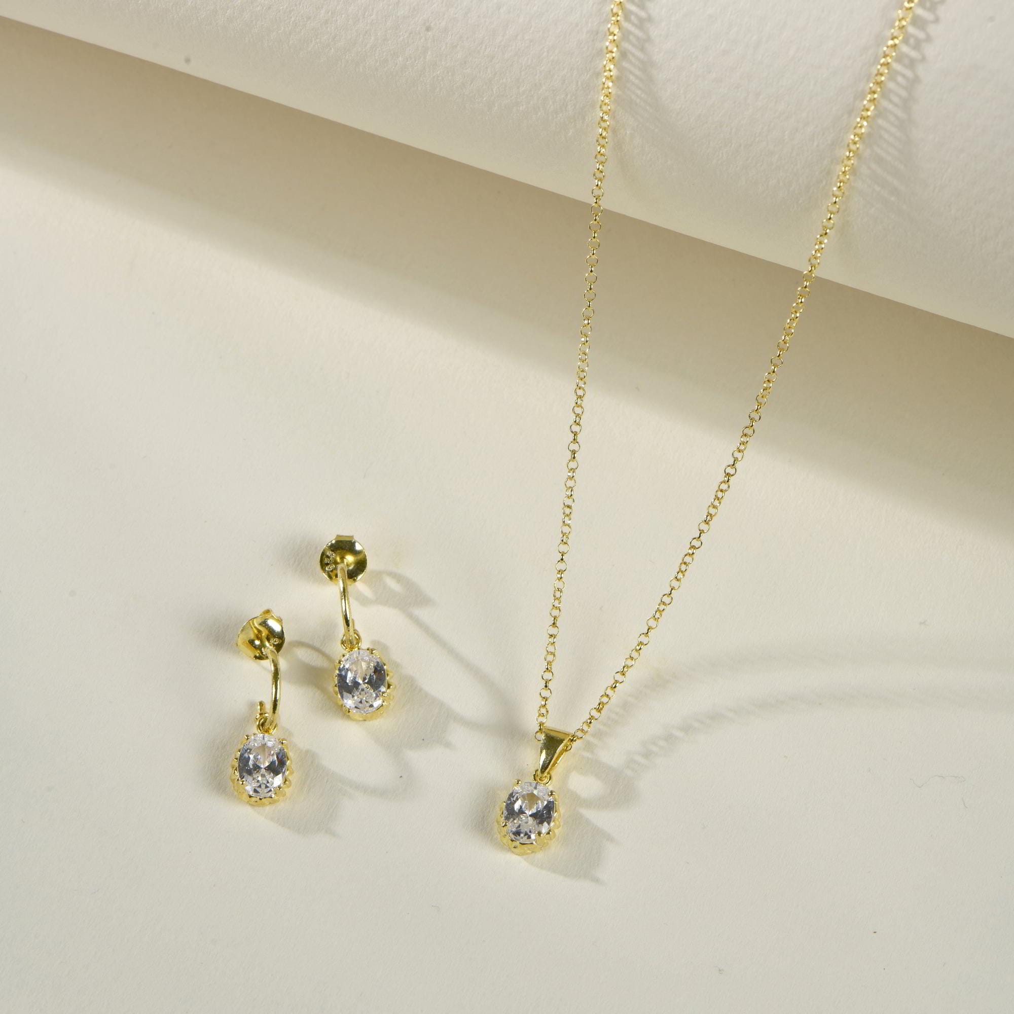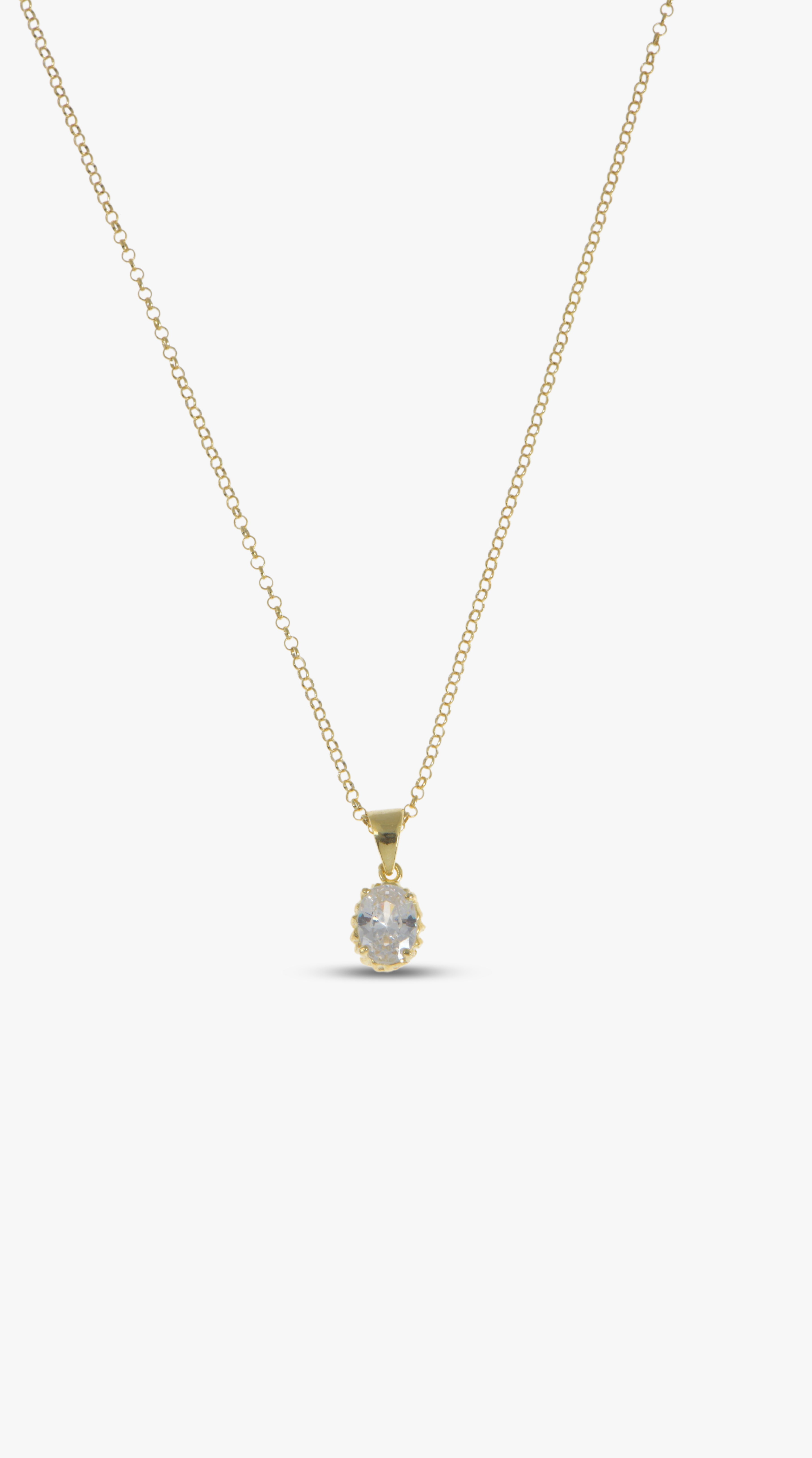 Silver Teardrop Diamond Necklace in 24K Gold, Vintage April Birthstone Pendant, Oval Cut CZ Diamond Charm, Birthstone Jewelry, Gift For Her