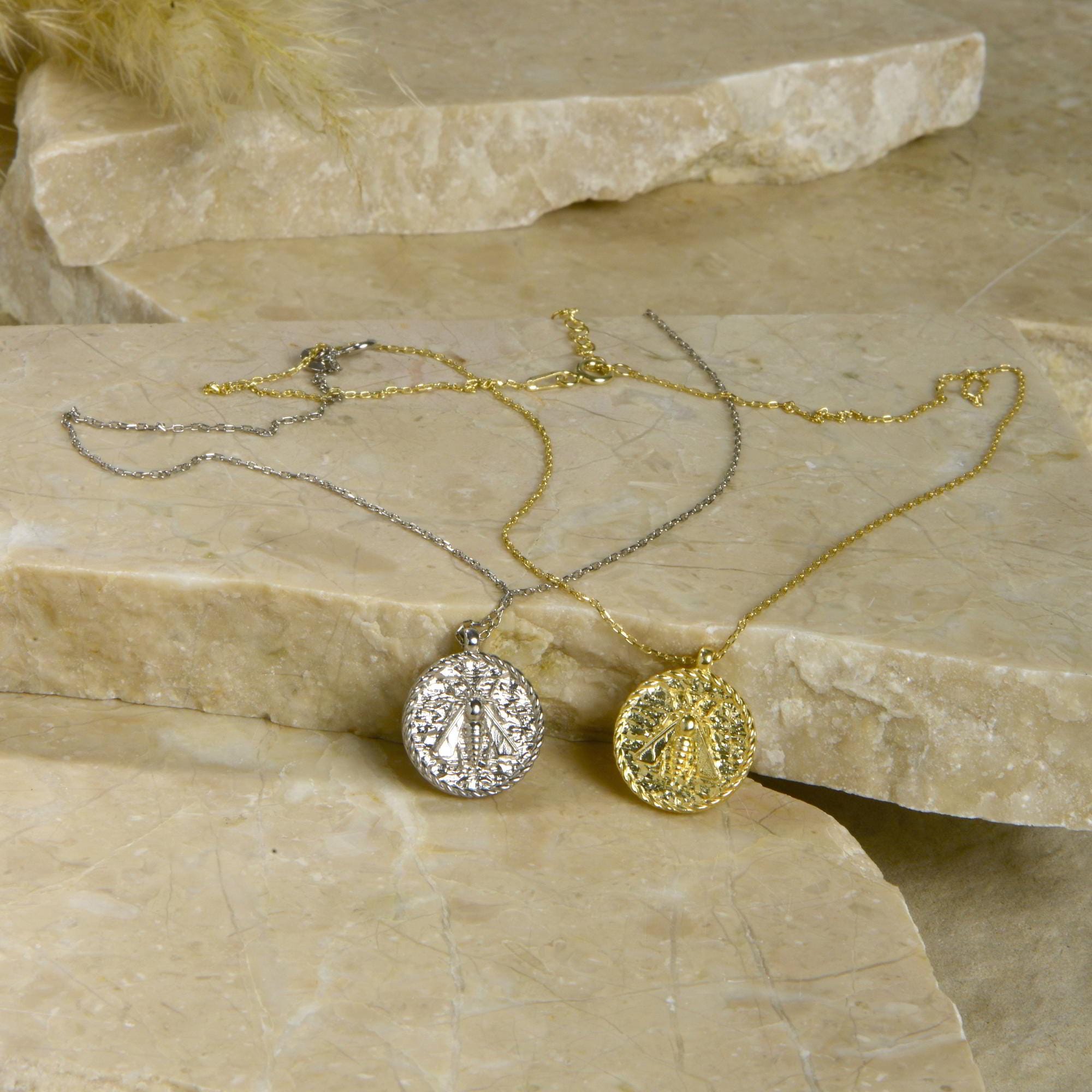 A stunning addition to any jewelry collection, this bee medallion necklace is perfect for everyday wear and special occasions, blending history with modern elegance and also perfect gift for your loved ones.
