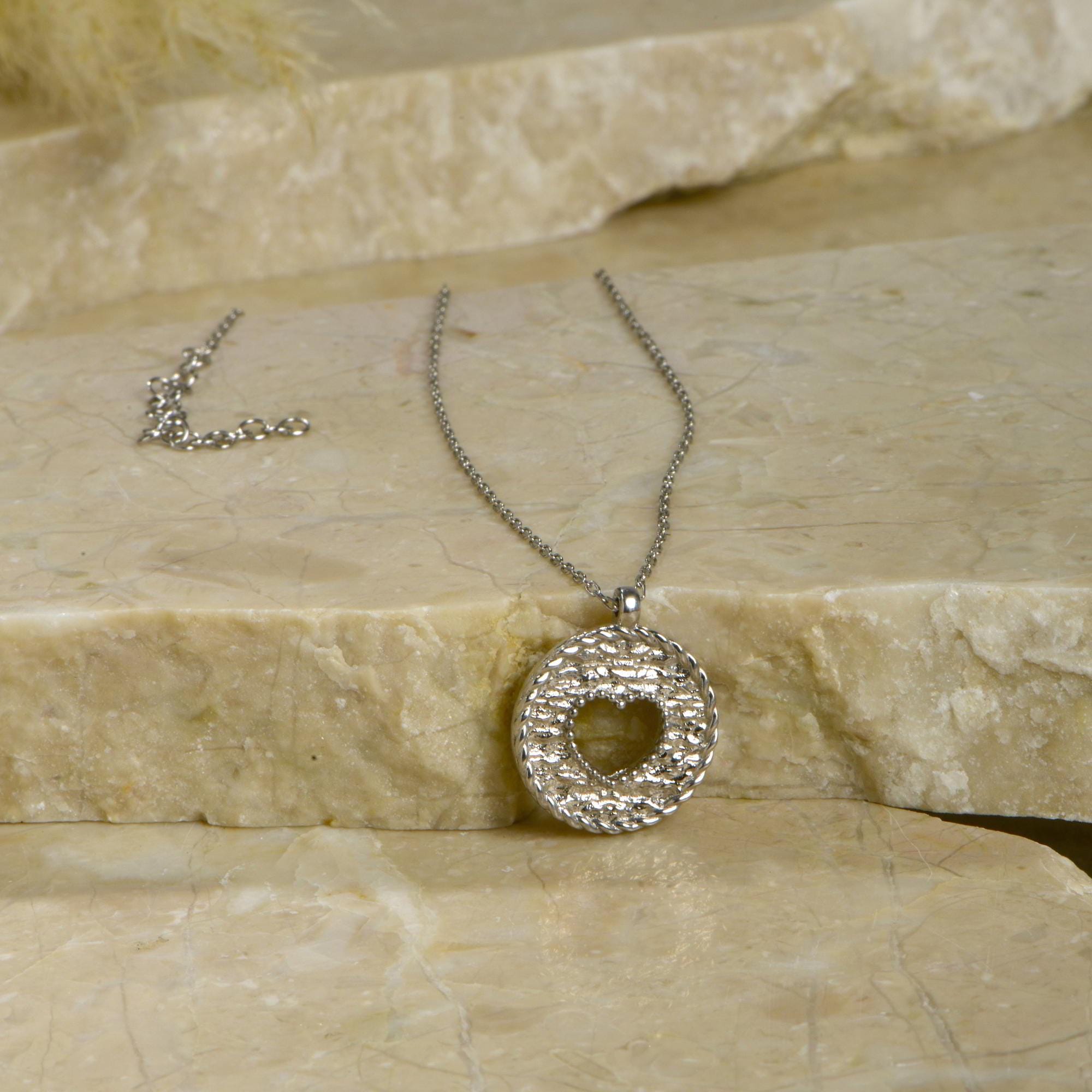 Sterling Silver Open Heart Necklace, Heart Shape Coin Necklace, Vintage Love Design Medallion Pendant, Dainty Heart Jewelry, Gift For Her