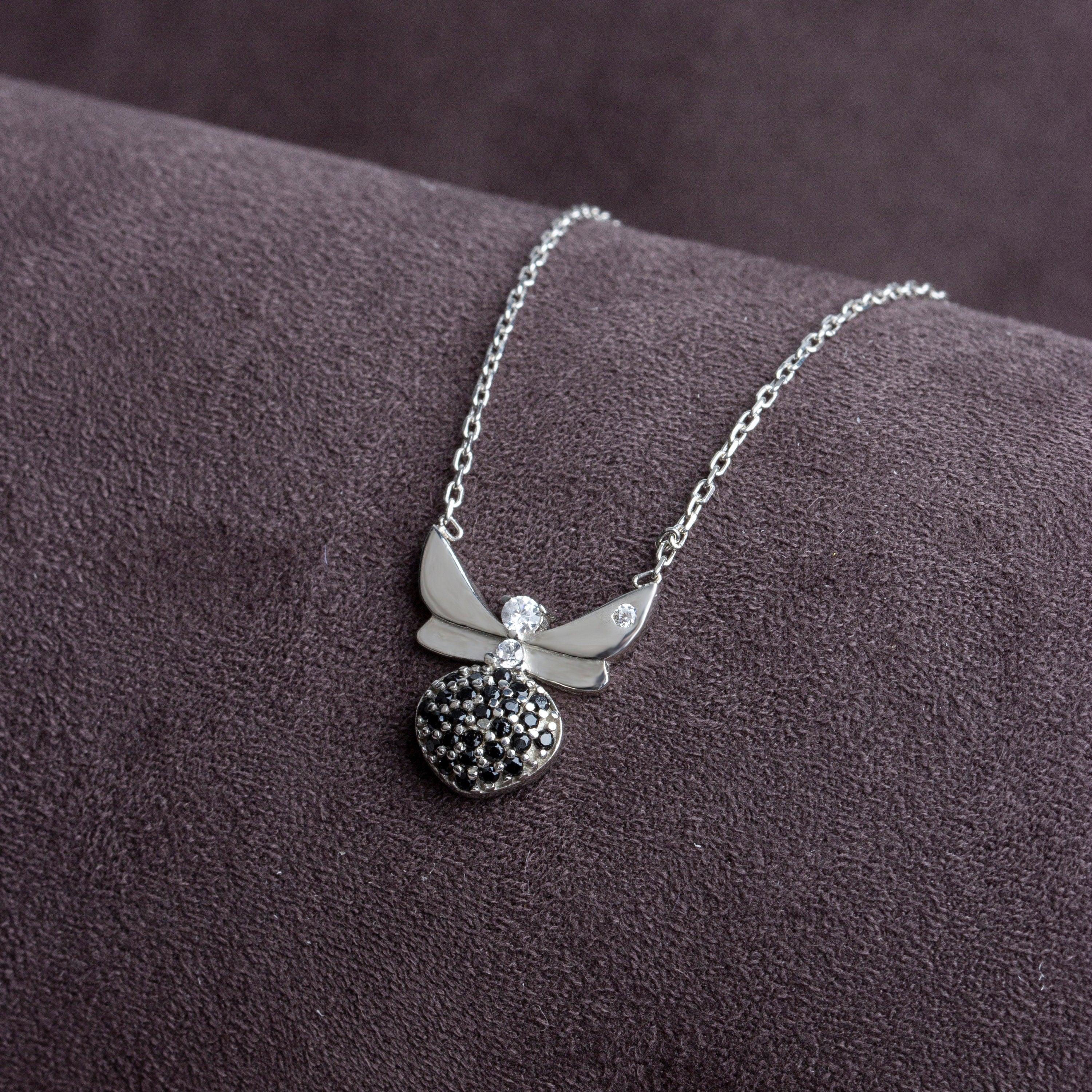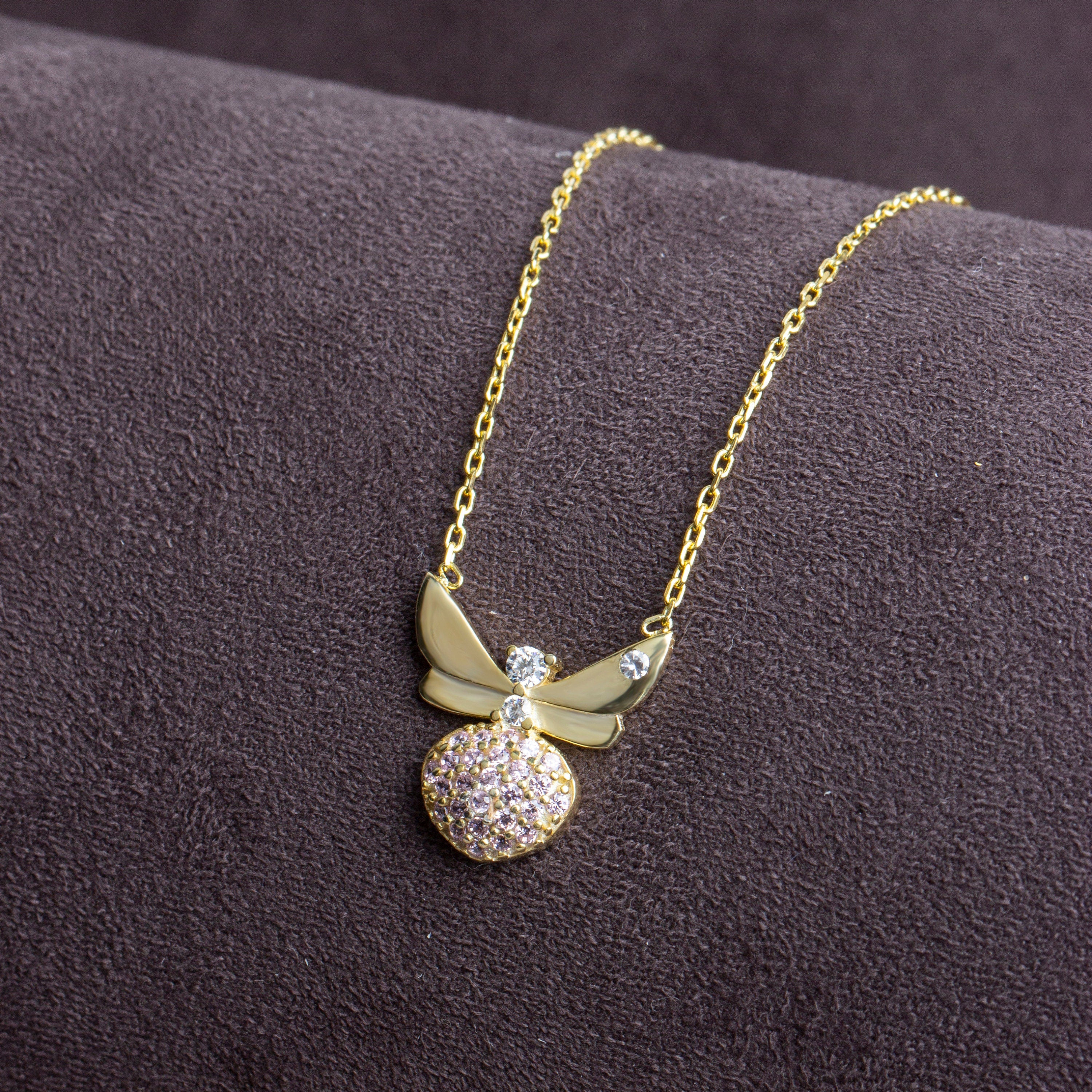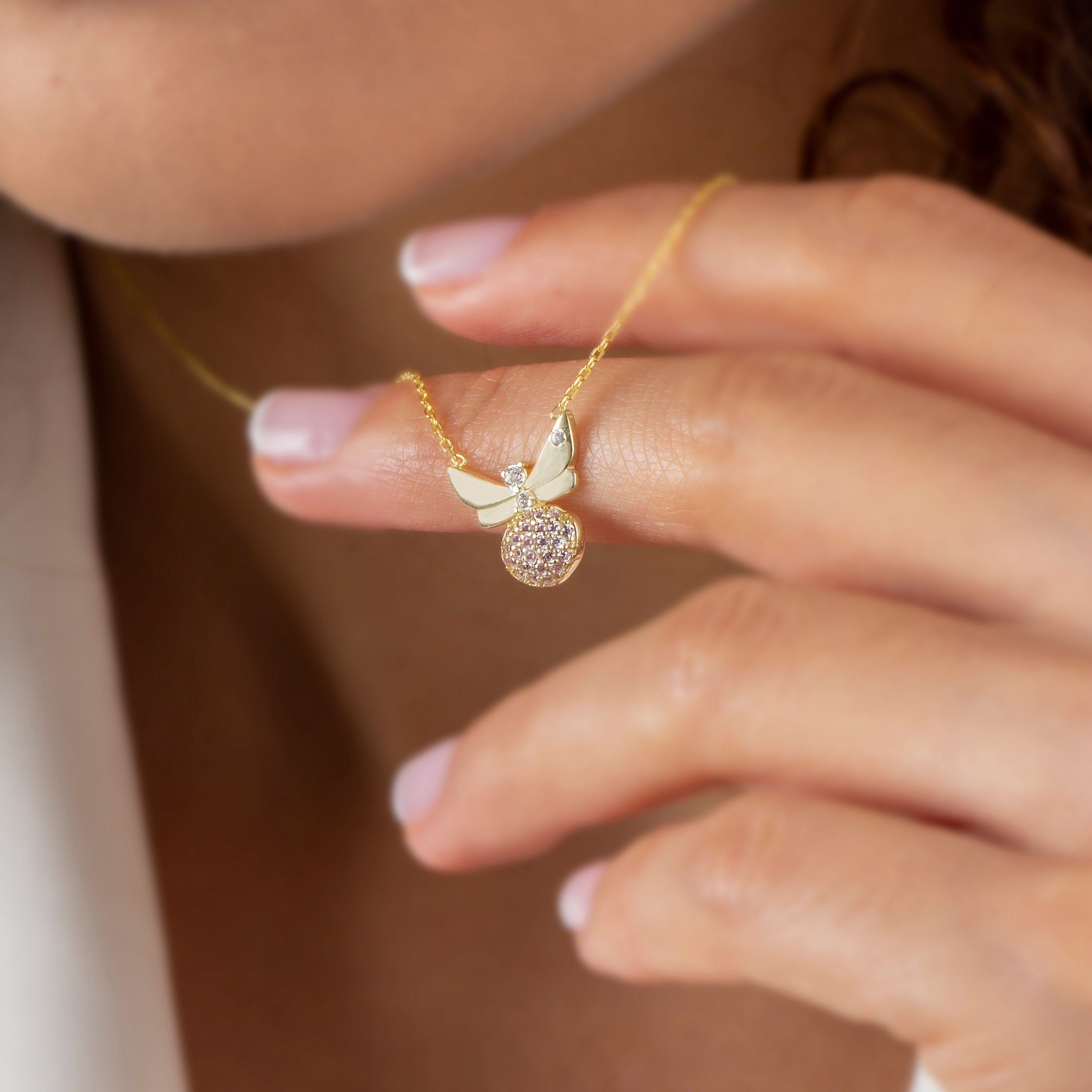 Tiny Silver Bee Necklace in 18K Gold, Minimalist Queen Bee Pendant, Pink CZ Diamond Bee Shape Necklace, Cute Jewelry, Christmas Gift For Her